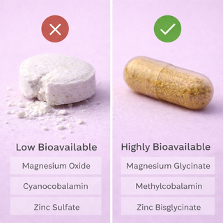Different forms of the same vitamin or mineral can vary in bioavailability — how much your body can absorb.