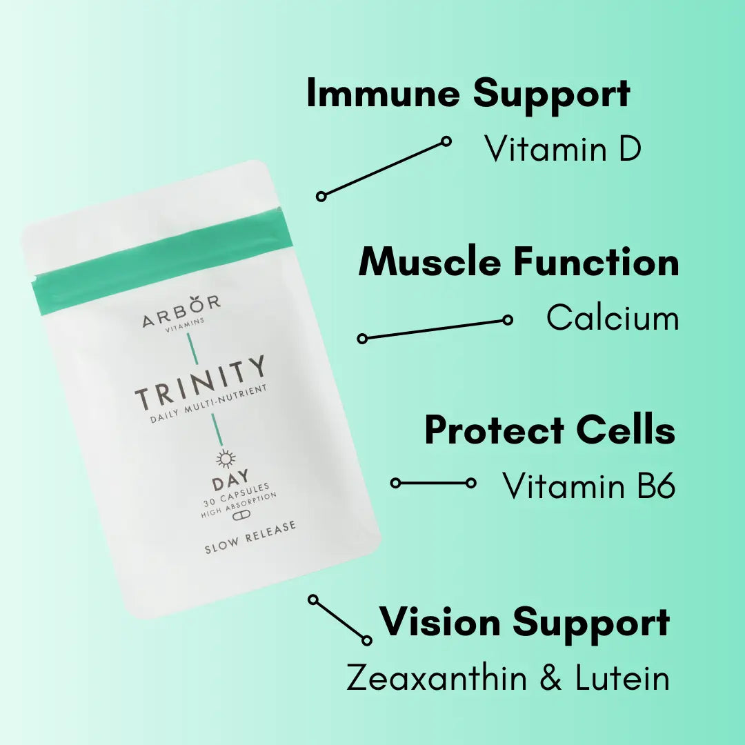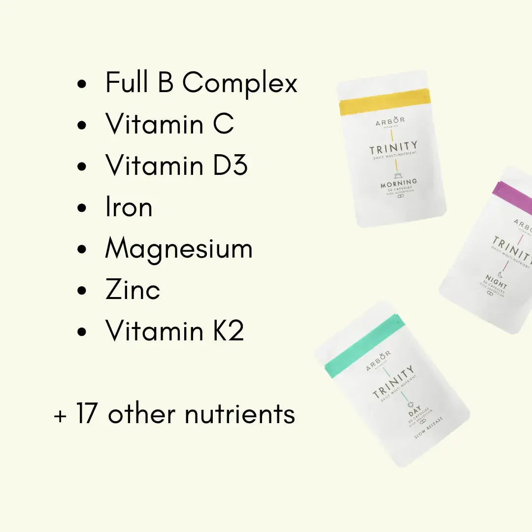 From daytime energy to evening calm, each of TRINITY’s 24 active ingredients plays a targeted role.